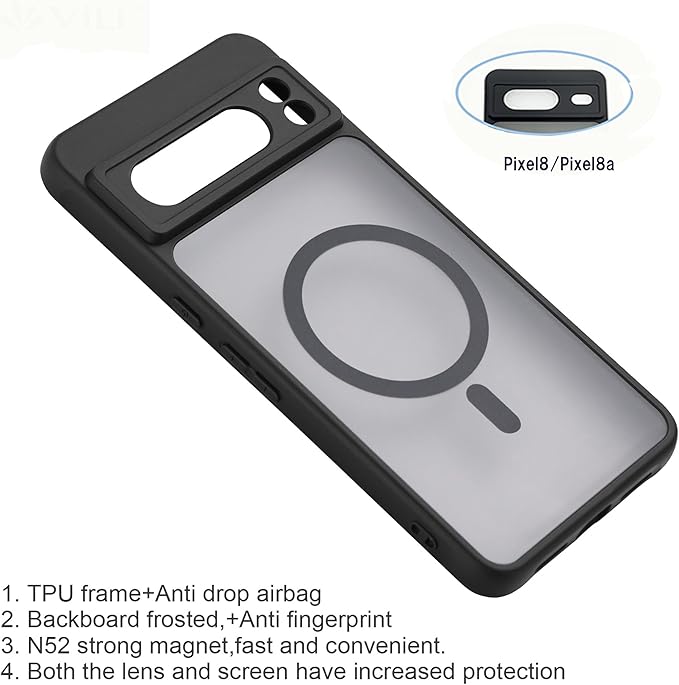 ViLi-GHA Google Pixel 8 対応 2in1 紙幣 カード収納 取外し可能 マグネット 着脱式 分離式 ストラップ付き 2WAY 手帳型ケース グレンチェック調 黒 CPIX8-VL-GHA-BK