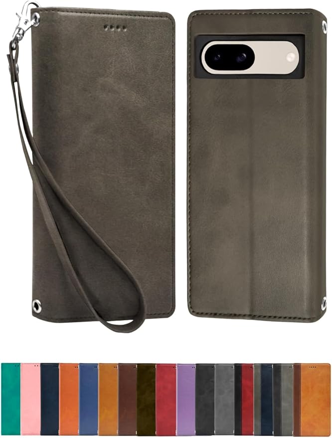 シズカウィル Google Pixel 8a ケース カバー 手帳型 本革調 レザーケース グレー 1個入り