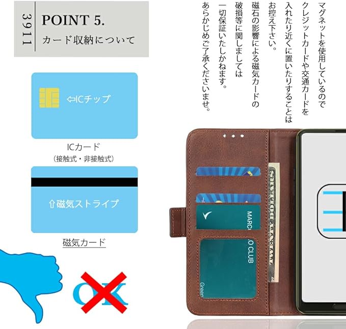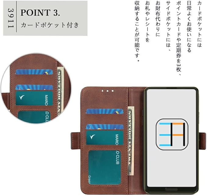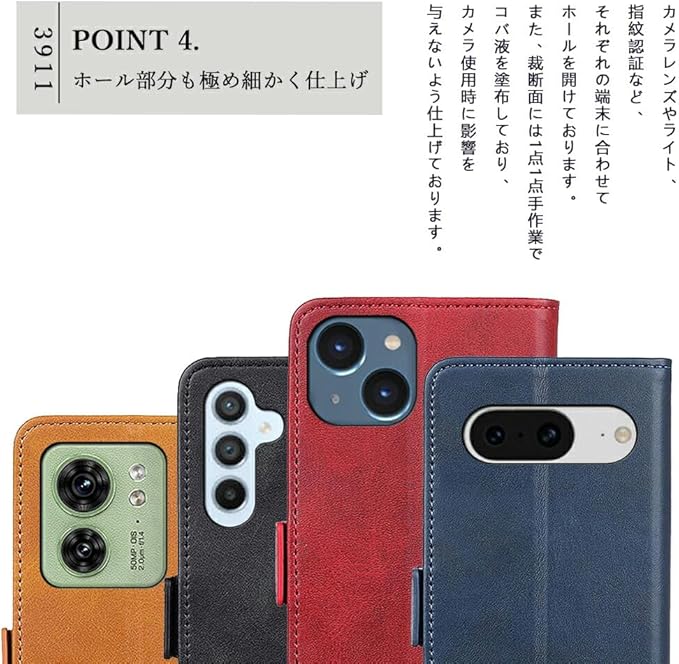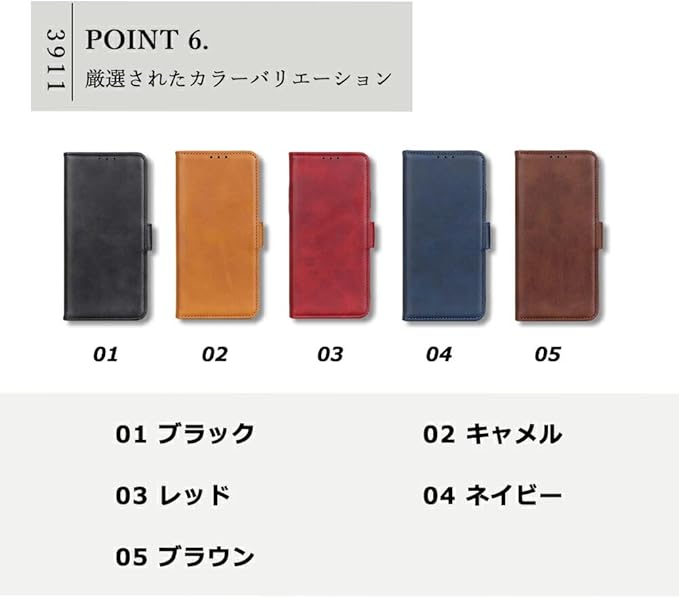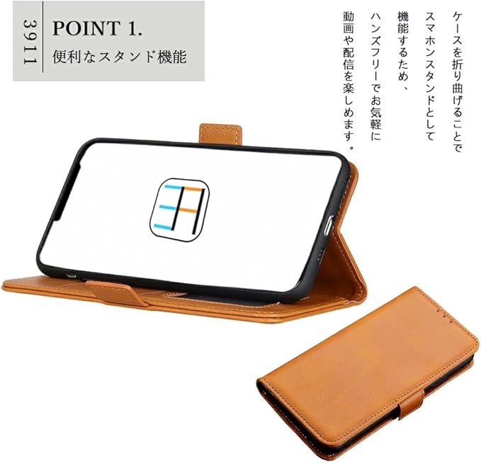 手帳型のデザインは、スマートフォンを全方位から保護し、使い勝手を向上させます。