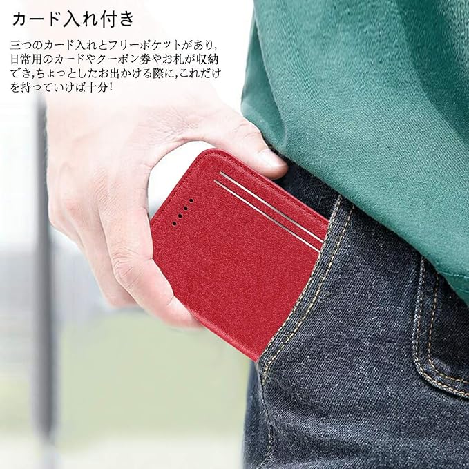 【機能性②】:留め具なし、マグネット内蔵式のケースです、使用上、指への支障もなくし、シンプルなデザイン感がよりアップさせます。手触り良いPUレザー+内部の柔軟なTPUカバーという二重保護で、衝撃吸収の性能が抜群、万が一の落下した時、本体をしっかり守ることができます。 *【ご注意】* お客様のご意見に応じて、スマホ本体に影響をさせないため、新出荷ロットにはケースの磁力を弱く設置しておきました、ご安心にお使えくださいませ。