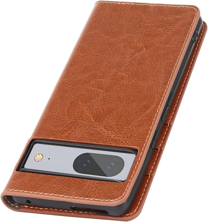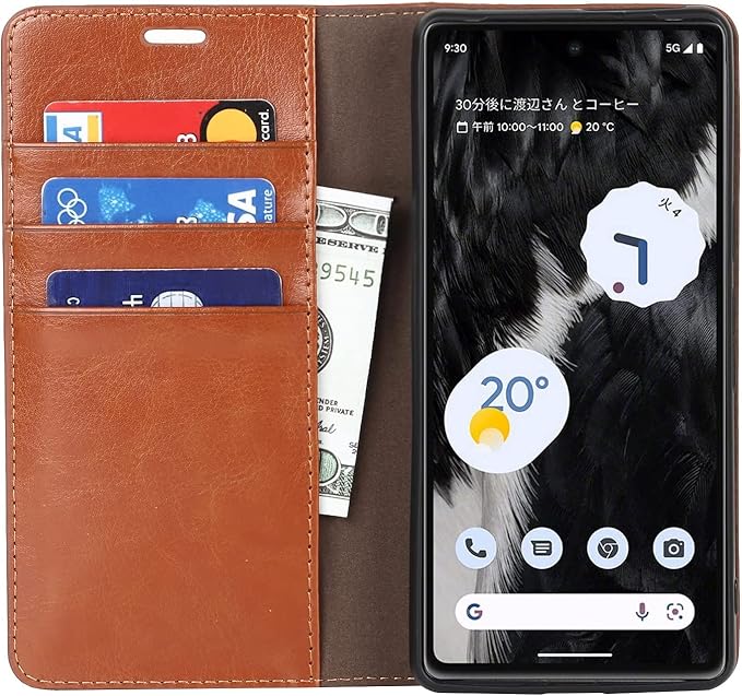 Pixel 7a 用 ケース 本革 手帳型 スマホケース カード収納3枚 磁気不良防止 マグネット無し カバー wbao ピクセル 7a用 (ブラウン)