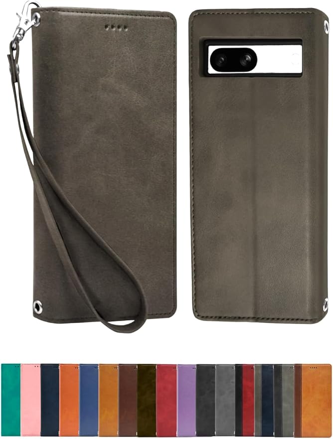 シズカウィル Google Pixel 7a 用 ケース カバー 手帳型 本革調 ピクセル7a 用 レザーケース グレー 1個入り