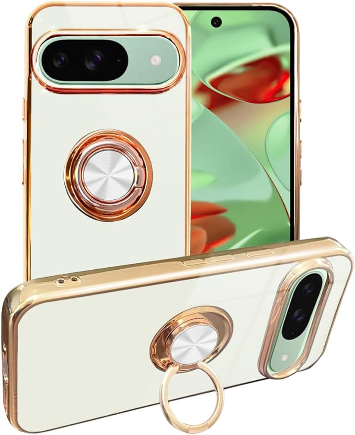 シズカウィル Google Pixel9 / Pixel9 Pro スマホケース スマホリング グリッティア リング付きケース パールホワイト 1個入り