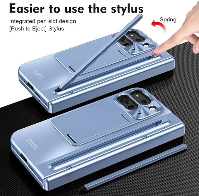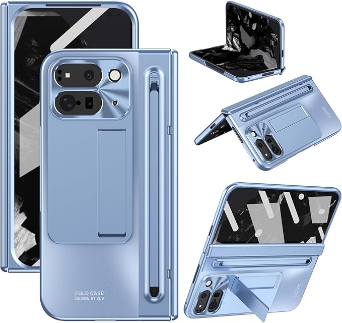 ケース 手帳型 GG Pxl 9 Pro Fold 携帯全面保護+強化ガラスフィルム+隠しスタンド機能 ヒンジ保護 メタルレンズカバー 薄型 軽量 きんぞくラッカ+ペン ワイヤレス充電サポート 携帯 折り畳み QI 人気 かわいい おしゃれ キラキラ 二層構造 フリップ 財布型 面白い 取り外し 耐衝撃 - 青