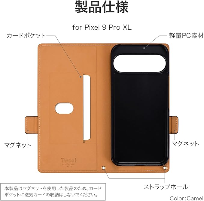 LEPLUS ルプラス Google Pixel 9 Pro XL 薄型・軽量PUレザー手帳ケース 「Twoal W」 キャメル LN-M24WP2BLP2CA