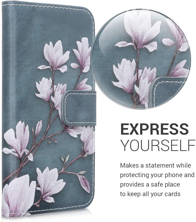 kwmobile スマホケース Google Pixel 4a対応 ケース - 手帳型 カード収納 スタンド 合成皮革 モクレンデザイン