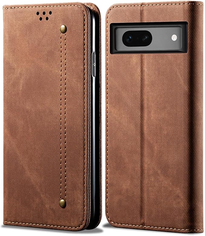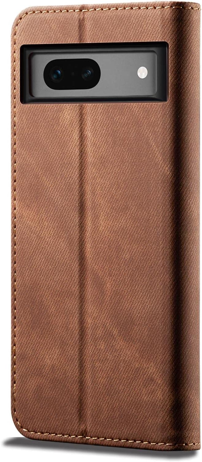 For Pixel7a ケース 手帳型 財布型 レザー 耐衝撃 レザー 保護 カバー ぴくせる デニム カード収納あり 使う便利性 兼用ピクセル7a カバー カード収納 スタンド機能 ぐーぐるぴくせる 対応Pixel7aケース 横置きスタンド機能 二つ折り 手作り 大人っぽい 落ち着くデザイン (ブラウン)