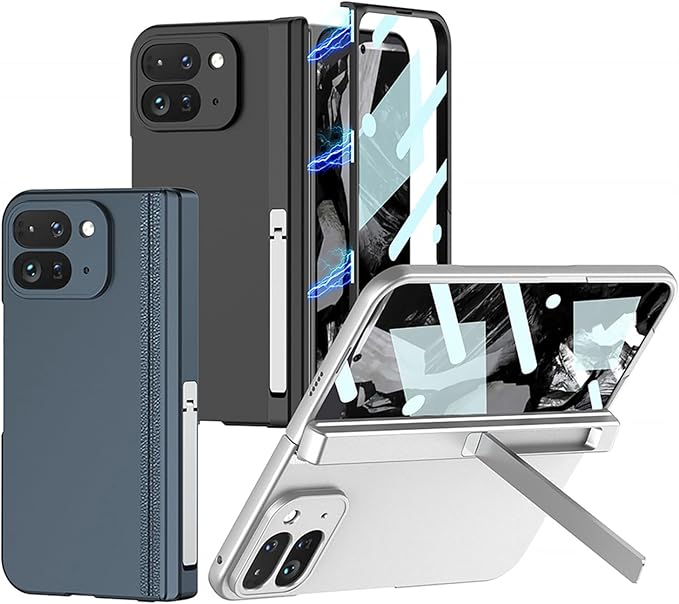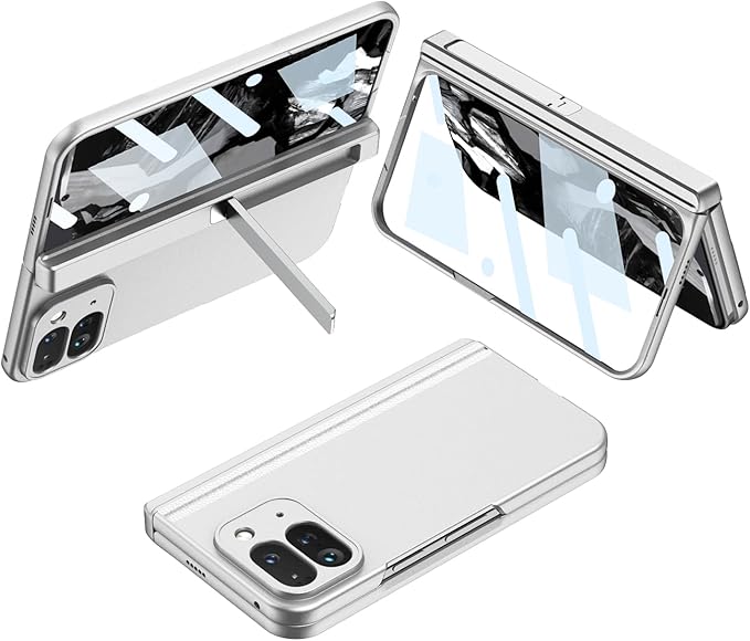 GG Pxl 9 Pro Foldのケース 全面保護 手帳型 折り畳み 薄型 軽量 マットの表面 強化ガラス保護フィルム ヒンジ保護 金属スタンド機能 レンズ ワイヤレス充電 滑り防止 カバー 指紋防止 スマホ ソフト 可愛い 面白い おしゃれ キャラクター キラキラ フリップ 磁気 落下防止 携帯電話 財布型 Beautycatcher - 銀