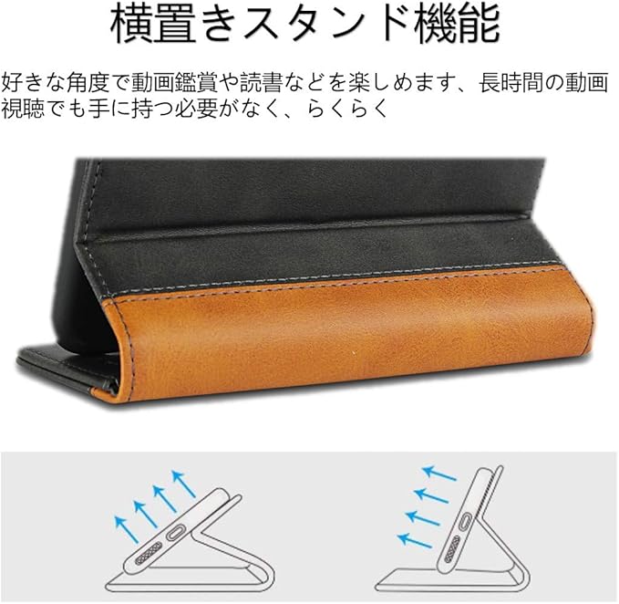 ●【スタンド機能】: 横置き水平スタンド機能を備えており、好きな角度で動画鑑賞や読書などを楽しめます。多角度調整可能で、PUレザーケースとTPU内ケースとの摩擦が大きくなり、ブラケットが倒れにくくなります。
