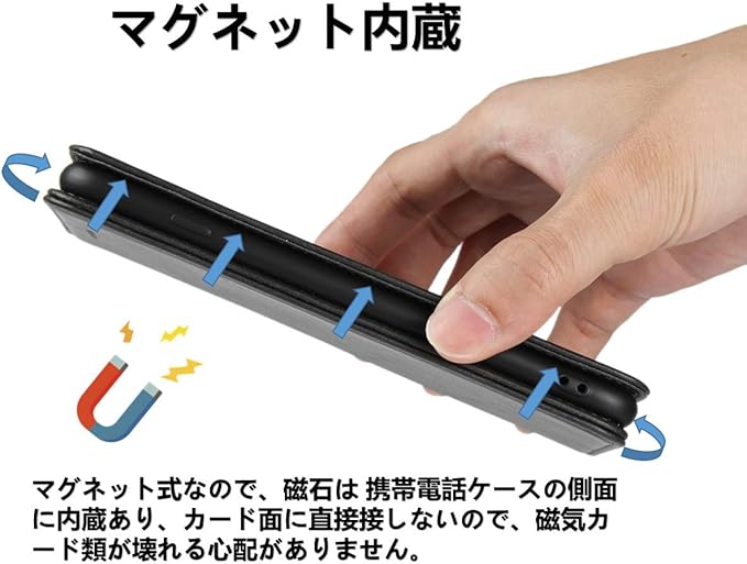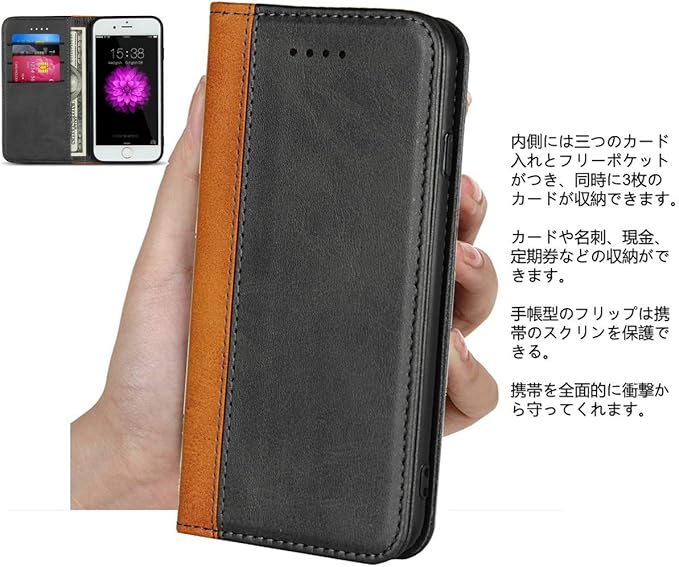 ●【上質な素材】外部は上質な合皮レザー素材を採用しており、放熱性が良く、傷や埃を防ぐことができます、滑りにくく、指紋、油分などもつきにくく。インナーケースは弾力性の柔軟黒TPU素材を採用しており、角までしっかり保護できるケースです、柔軟性があり本体への装着脱着も簡単です。衝撃吸収機能あり、しっかりの二重保護でお携帯を守り抜きます。