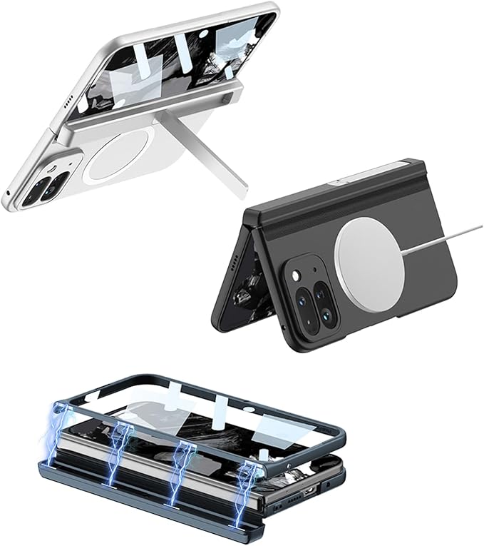 GG Pxl 9 Pro Foldのケース 全面保護 手帳型 折り畳み 薄型 軽量 マットの表面 強化ガラス保護フィルム ヒンジ保護 金属スタンド機能 レンズ ス充電磁気リング 滑り防止 カバー 指紋防止 スマホ ソフト 可愛い 面白い おしゃれ キャラクター キラキラ フリップ 磁気 落下防止 携帯電話 Beautycatcher - 銀