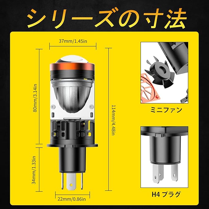 優れた放熱性能 航空機グレードのアルミ素材、Hi/Loビーム反射カップ、15,000RPMターボ冷却ファンを組み合わせ、放熱効率を250%向上。強化ICドライバー制御により過熱を防ぎ、安定した出力で50,000時間以上の長寿命を実現。
