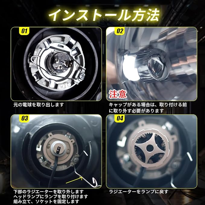 【簡単な取り付け】最新の黒色H4プロジェクションバルブは、ミニプロジェクターレンズ付きで、純正ハロゲンバルブと同じサイズに適合し、直接交換可能です。ヘッドライトユニットを開けることなく、簡単にインストールできます。