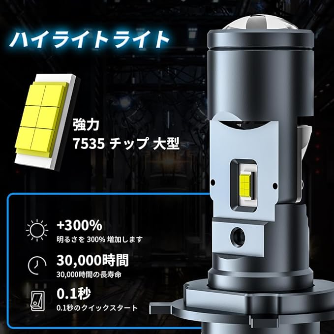 【優れた放熱性能】H4プロジェクションLEDヘッドライトは航空アルミニウム製ボディと独自の空洞型ヒートシンクを採用し、放熱効率を250%向上させ、50,000時間以上の連続発光を実現します。最新のミニプロジェクターレンズ付きH4 LEDヘッドライトは、元のハロゲンバルブと完全に同じサイズで、簡単に取り付けられます。