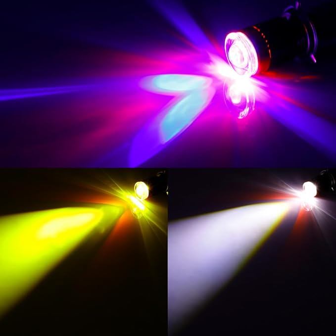 【HI/LO切替可能・フラッシュモード】2色バイク用ヘッドライトは、ロービームを黄色ライトに、ハイビームを白いライトに自由に切り替えることができます。元のH4ハロゲンランプと比較して、より強力な貫通力を持ち、より広い視野を確保します。運転環境に応じて自由に切り替えが可能です。コンパクトで圧倒的な照射距離を実現し、完璧で純粋な光配分を実現し、周囲の眩しい光を減少させ、対向車に不快感を与えることはありません。夜間の運転をより安全にします。また、フラッシュモードも備えており、警告の役割を果たすことができます。