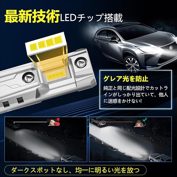 【1.55mm超薄基盤搭載】こちらのh7 led ヘッドライトは発光部分を薄くすることにより発光点が中心に近づき、純正と同じ配光を再現。均一な光で、ダークスポットなどは一切なし!夜間運転の安全性・視認性・快適さが向上します。