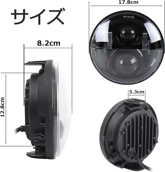 包装内容&保証:7インチヘッドライト1個。もし何かの問題があったら、ぜひご遠慮なくお問合わせください。問題を解決する為に最善を尽くすことをお約束致します。