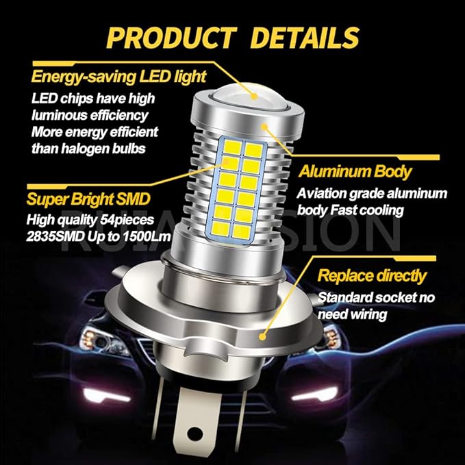 【用途】このH4 LED電球は、二輪車のヘッドライトや車のフォグランプに使用されます。 車のヘッドライトには使用しないでください。