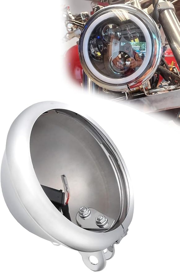 CHELHEAD 5.75インチ LEDヘッドライト用ケース シルバー ハーレー オートバイ対応 丸型 ブラック ハウジングキット 固定用ステー付き 防水耐震 取り付け簡単