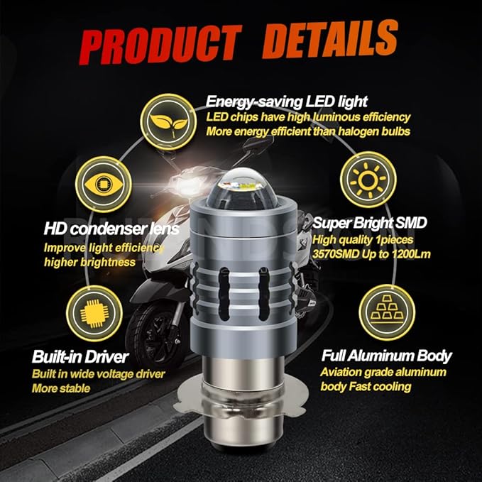 【360度照明】360度フルアングル照明。このP15D-25-3 LEDバルブは、高精細なプロジェクターレンズを採用し、光の焦点をより明確にします。 360 照明で、影の死角を減らし、ドライバーの安全性を向上させます。