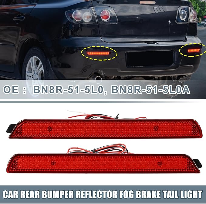 リアバ ンパーリフレクター フォグブレーキテールライト バックフォグランプ BN8R-51-5M0B BN8R-51-5M0 レッドLED Ma zdaに対応 3 2005-2009に対応 プラスチック レッドレンズ 2セット入り