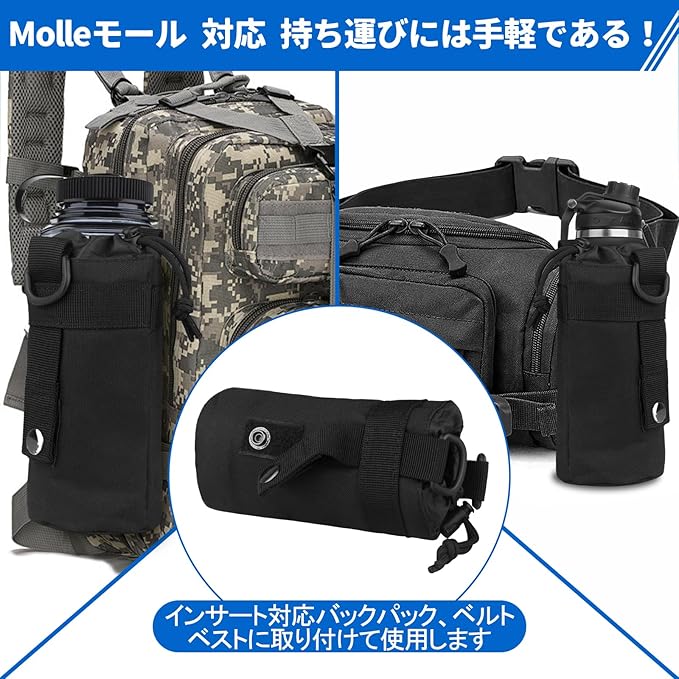 【持ち運びに便利なデザイン】:このウォーターボトル保護カバーは高強度のd型バックルがあり、小型懐中電灯などのアウトドア用小道具をかけることができ、持ち運びに便利です。MOLLE対応での接続で、リュックサック、チョッキ、ベルト、その他の装備に簡単に固定でき、小袋をより個性的で実用的にすることができる