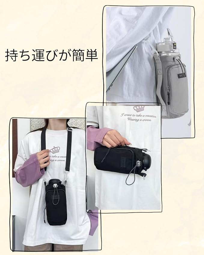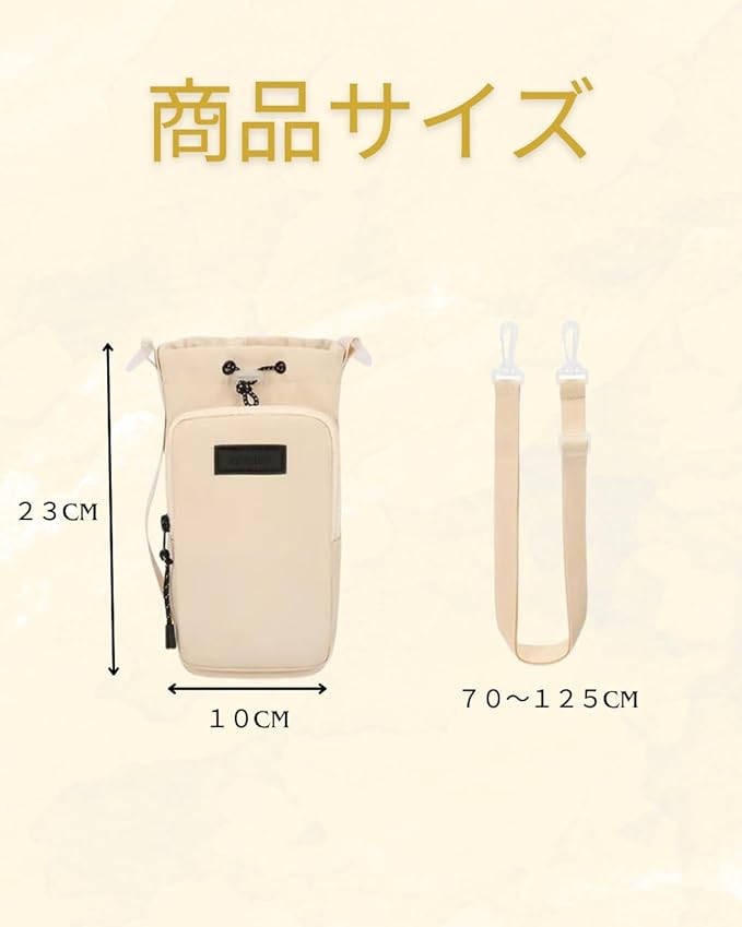 ・【断熱&耐久設計】 高密度ネオプレン素材採用で水筒の保温/保冷性を長時間キープ。耐摩耗性に優れ、登山/キャンプでの過酷使用にも対応する耐久仕様。 ・【調節可能】 調節可能なショルダーストラップ付き、断熱ポケットの立体裁断が体の動きにフィットし、ランニング時も安定。快適なフィット感で肩掛けが可能です。 ・【サイズ】 500mlから1Lのペットボトルや水筒に対応しています。さまざまな容量のボトルを収納できます。 ・【手軽】軽くて持ち運びやすく、材質が軽く、外出や旅行にも便利で、物を入れずに保管しやすく、物を入れるのは超省力です。 ・【多機能】水差しだけでなく、携帯電話なども収納でき、旅行や遠足にも最適。