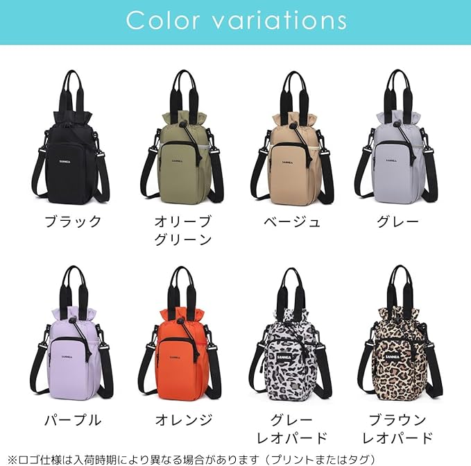 ブラック(黒)・ベージュ・オリーブグリーン(緑)・グレー(灰色)・パープル(紫)・オレンジ・グレーレオパード(ヒョウ柄)・ブラウンレオパードの8色展開