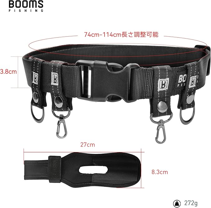FB2 フィッシングベルトのベルト取り付け可能幅:約75~120cm、ベルト幅5.2cm