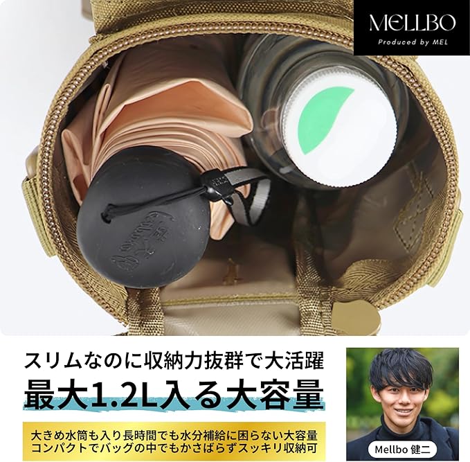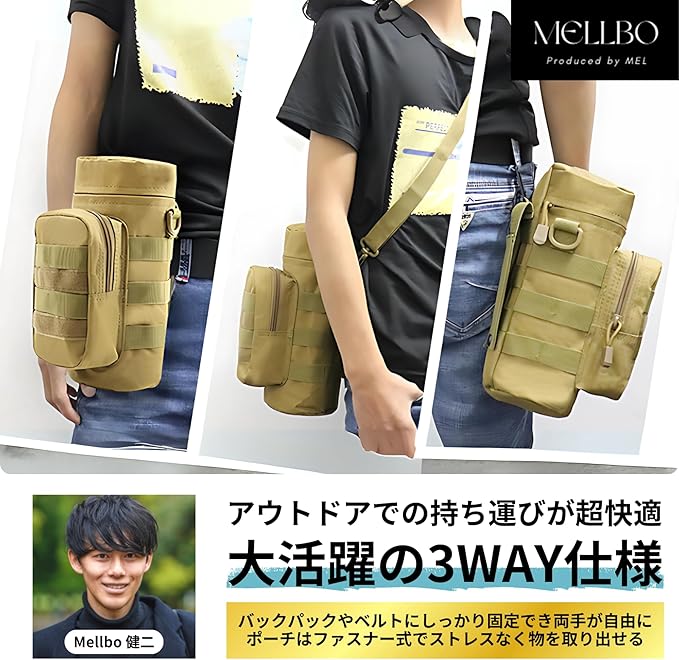 Mellbo 水筒ポーチ 水筒カバー ボトルポーチ ボトルホルダー ミリタリー タクティカル アウトドア 最大1.2L 3WAY ウエスト ショルダー 吊り下げ 排水穴付き スリム 大容量