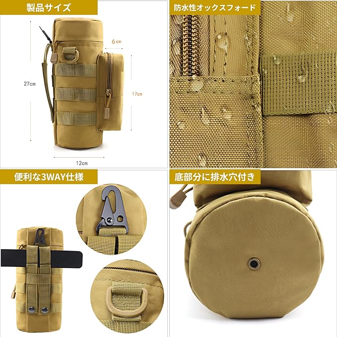✅ 【過酷な環境でも安心!タフな耐久性】「過酷な環境でも使える水筒ポーチが欲しい!」そんなアウトドア愛好者に最適!頑丈な素材&しっかり固定できる設計で、どんなシーンでも安心。サバゲー、登山、キャンプなど、激しい動きにも対応!