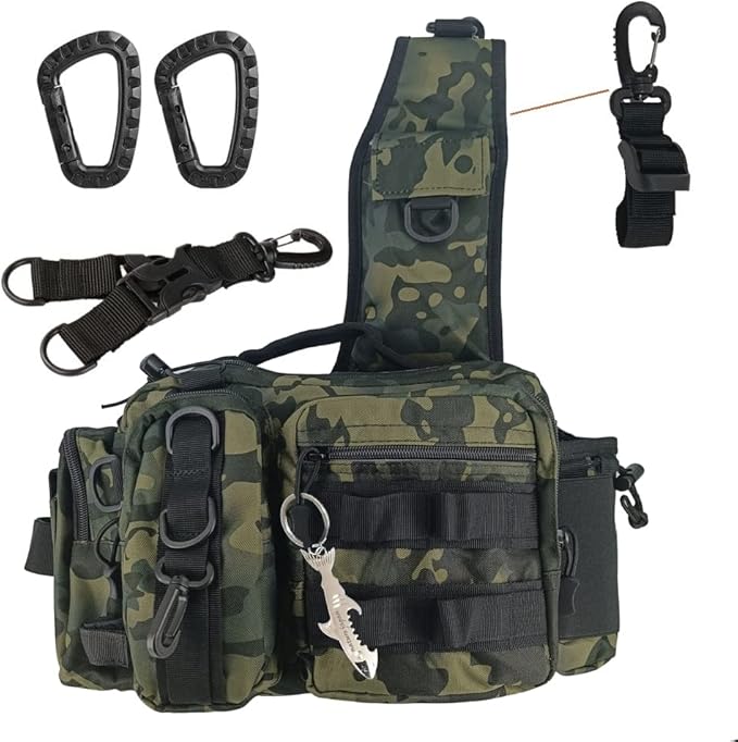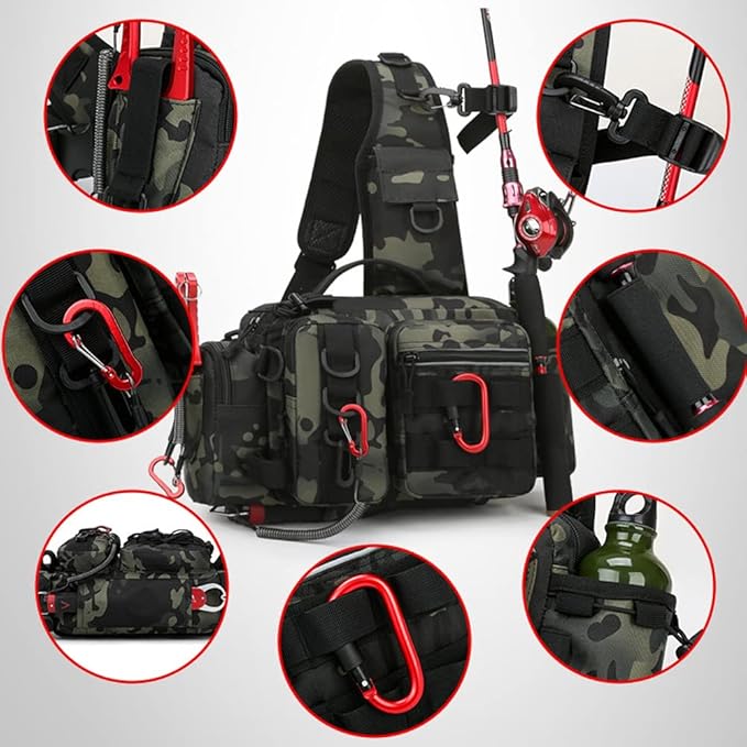 [nature japan] フィッシング バッグ 釣りバック カラビナ 2WAYジョイント ロッドベルト カンヌキキーホルダー付き タックル ランガン サバイバル 多機能 大容量