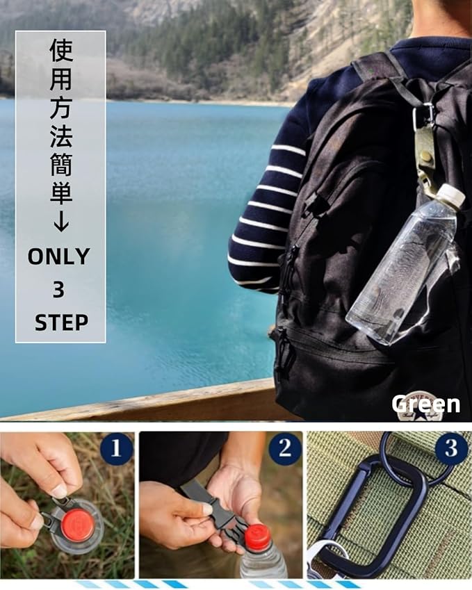 【モバイル水分補給ソリューション】** ・ハイキング中にバックパック外側でクイックアクセス。 ・サイクリング時にフレームにセットして振動防止。 ・キャンプサイトでテントポールに吊り下げ即席給水ステーションに。