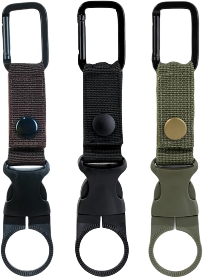 ペットボトルホルダー ドリンクホルダー カラビナ付き(取り外し可能)ベルトホールド可能 アウトドア 登山 キャンプ ハイキング 登山用 水分補給 着脱簡単Green-Black-Brown