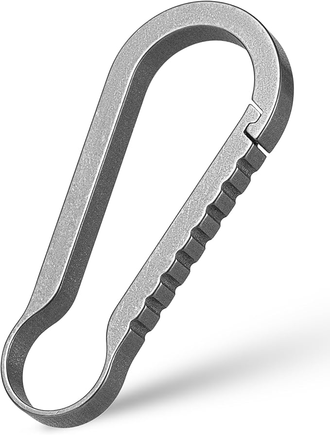 滑り止め設計:開口部の溝設計により滑り止め性能が向上し、押す操作がより安定して便利になります。チタン合金の弾力性により、キーチェーンの開閉が非常に簡単になり、取り付けや取り外しもより便利になります。