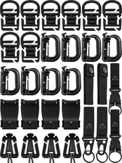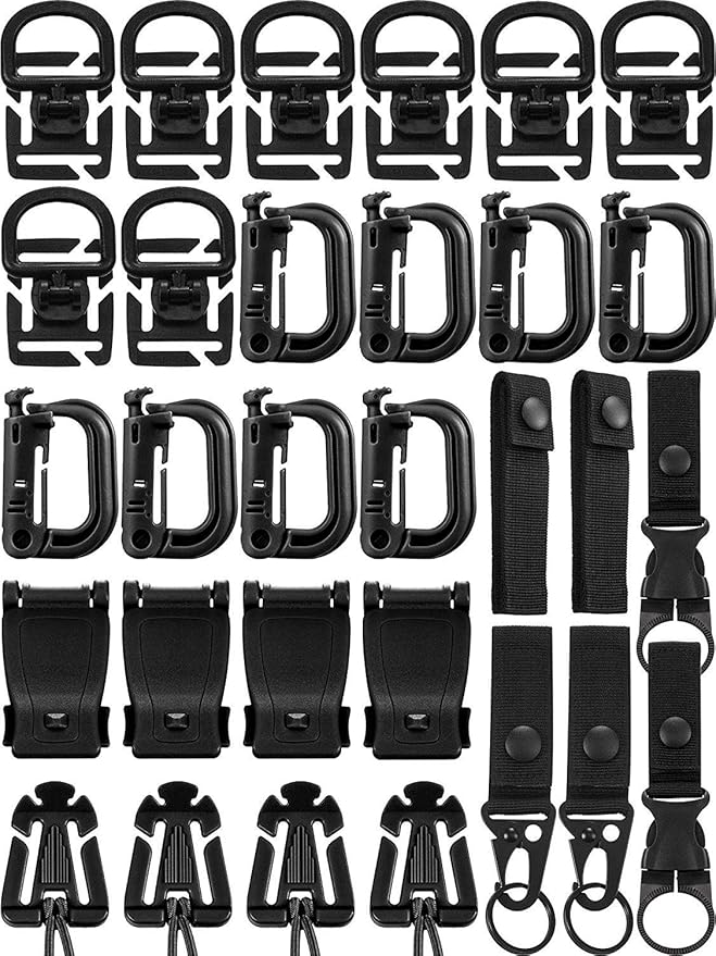 7種類全部30個セットあらゆる種類のニーズを満たす大容量 :ブラスチックカラビナ*8+ ウェブドミネーター*4+ベルクロ式ベルトキーホルダー*2 + Dリング 360 回転 フック ホルダ*8+タイ ロック吊り*2+ウェビングクリップ*4+ペットボトルホルダー ボトル ック 轻量*2 コスパ抜群 モールシステム対応 サバゲなどに最適