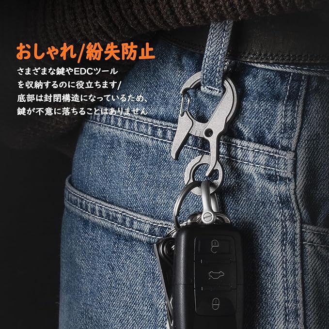 TISUR チタン キーホルダー カラビナ フック 栓抜き クイック リリース 紛失防止 メンズ 多機能クリップ 取付簡単 頑丈 錆びない