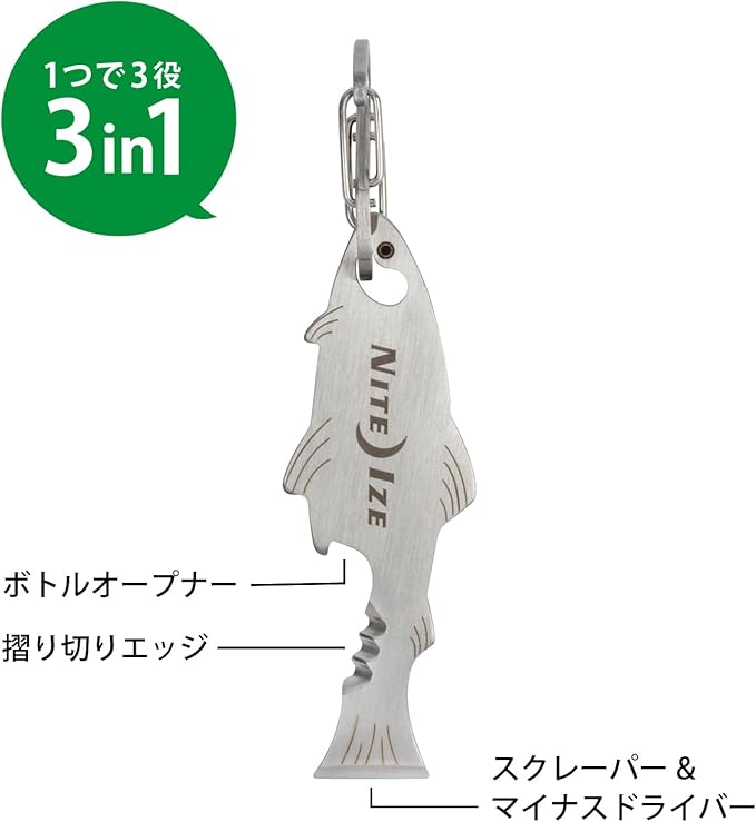 ナイトアイズ(NITEIZE) ドゥーヒッキー フィッシュキーツール マルチツール 多機能ツール S字型カラビナ付き 小型 キーホルダー 栓抜き ドライバー シルバー