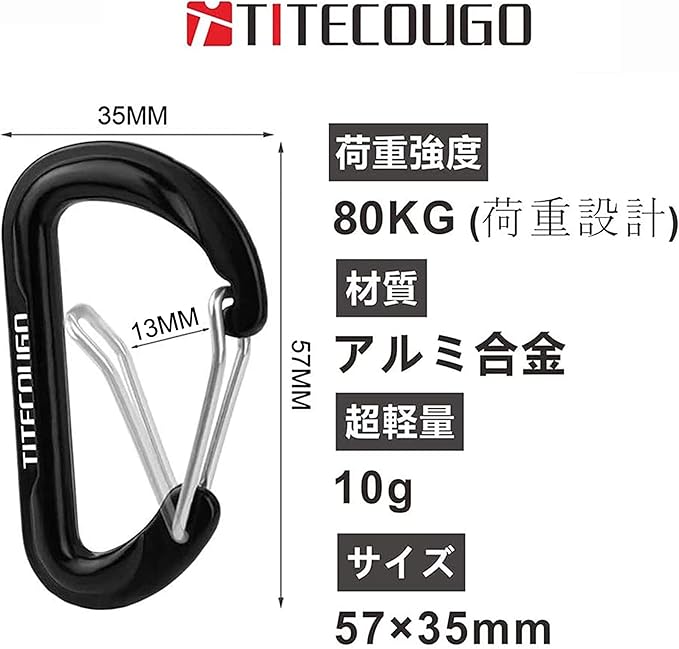 TITECOUGO Dリン グカラビナ 多機能 カラビナ アルミ合金 超軽量 丈夫な キーチェーン 生活雑貨 アウトドア キャンプ 耐久性 色も型番も多い