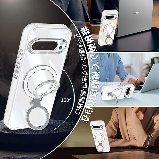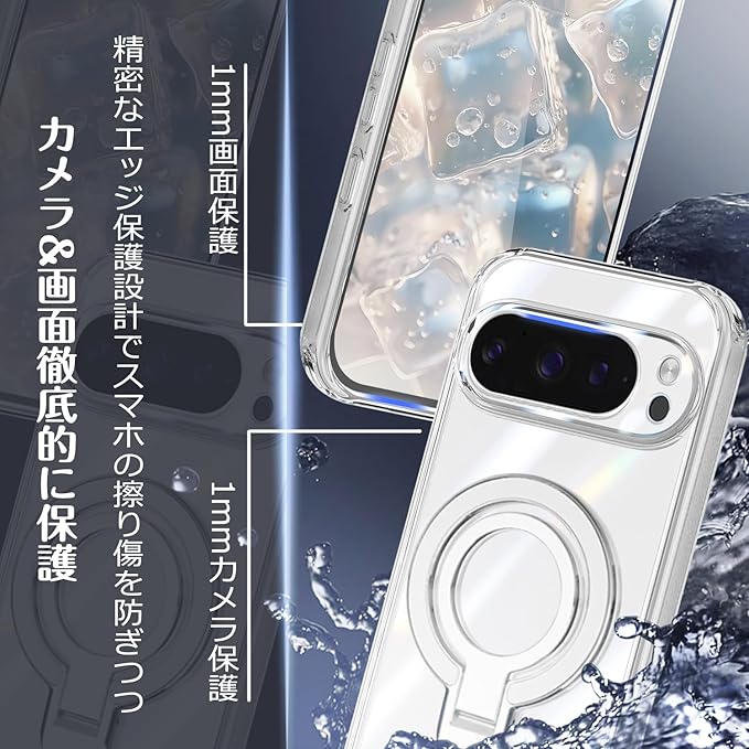 Google Pixel 10 Pro XL ケース クリア リング付き 縦横両対応 耐衝撃 ピクセル10 Pro XL 透明 軽量 薄型 スタンド機能 保護カバー