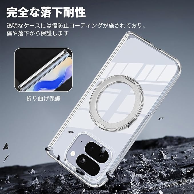 For google pixel 10 pro fold ケース MagSafe対応 Pixel 10 Pro Fold ケース カバー 360 回転スタンド pixel10 pro fold スマホケース 透明PC折りたたみ ピクセル10プロ Fold カバー 磁気ヒンジ保護 グーグルピクセル10プロFold 薄型 軽量 黄ばみ防止 衝撃吸収シルバー