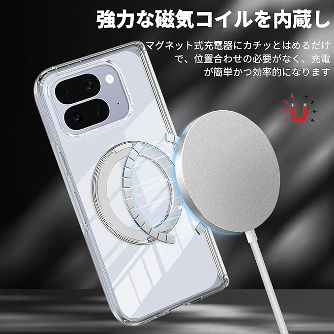 【マグネット式デザイン】pixel fold 10 pro foldケース 強力な磁気コイルを内蔵し、ワイヤレス充電プロトコルに完全に対応しています。マグネット式充電器の近くに置くだけでカチッと固定されるので、充電ポートの位置を合わせる必要がなく、充電が簡単かつ効率的になります。また、マグネットは日常使用中にケースをスマートフォンに固定し、誤って外れるのを防ぎ、利便性と安全性の両方を実現します。