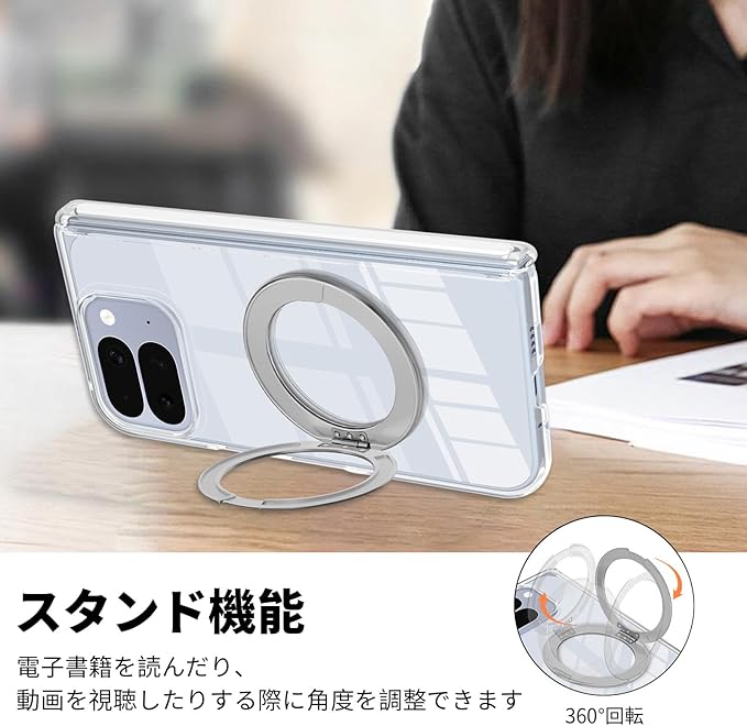 【360 回転リング】google pixel 10 pro fold ケース この一体型メタルリングは、持ち運びに便利で、ストレス解消にもなります。指に装着するだけで、片手でしっかりと固定でき、動画のスクロールやメッセージの返信など、スマートフォンが滑り落ちる心配がありません。内蔵ダンパーにより、カチッとしたクリック感とスムーズな回転を実現。退屈な時に軽く回してストレスを解消するのに最適です。実用性と楽しさが完璧に融合した逸品です。