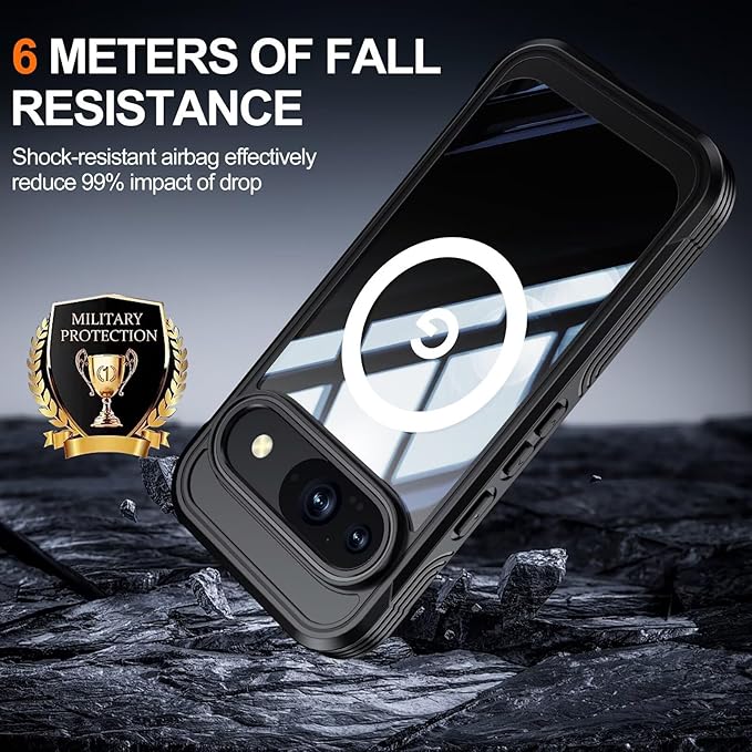 Disonbeir 対応 Google Pixel 10 Pro XL ケース MagSafe対応 全面カバー 両面ケース 液晶フィルム付き 360度全面保護 マグネット Qi充電 耐衝撃 アウトドア,ブラック