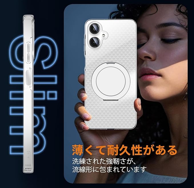 【多機能360度 縦も横も思いのまま】背面に搭載された嵌め込み式リングは、安定したアルミ合金製の円形スタンドを採用しており、従来のリングと比較して滑りにくく、安定したグリップを提供します。360 回転スタンド機能により、縦置き・横置きどちらの状態でも安定して利用でき、0 ~ 120 の間で多角度自由に調整できます。動画視聴やFaceTimeを利用する際には、両手を解放し。外出先でも手軽に使用でき、リングやスタンドを持ち歩く必要がない。ケースを開けるだけでスタンドの完成!指にかければリングも便利に使用でき!ケースを閉じれば背面はスマートに平坦に。無限の使い方が可能で、機能性を重視する方にはぜひ手に取ってみてください!