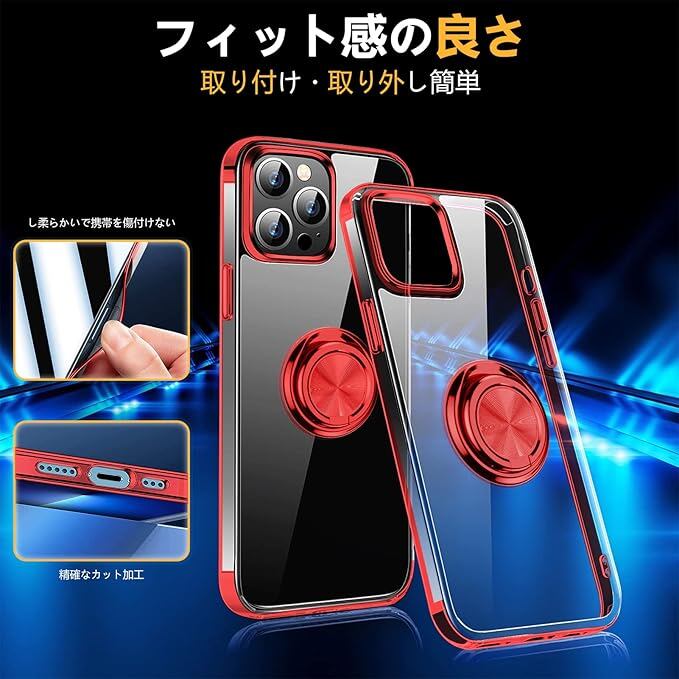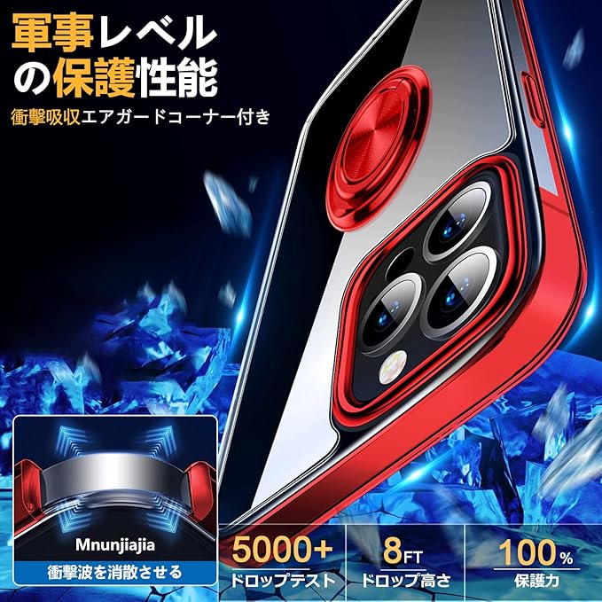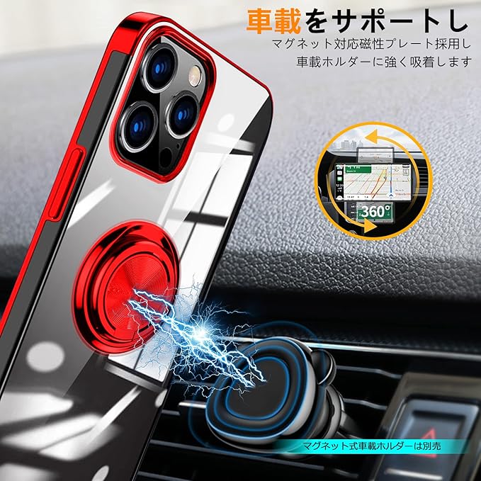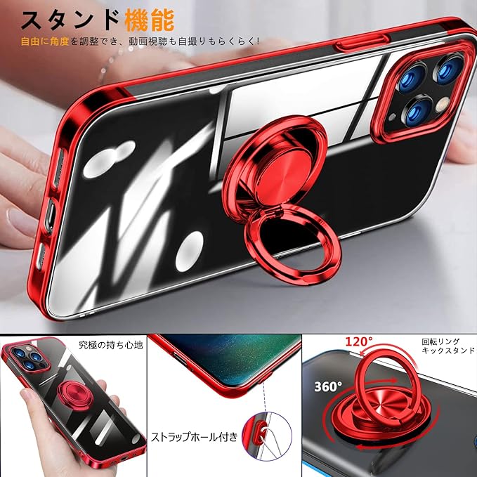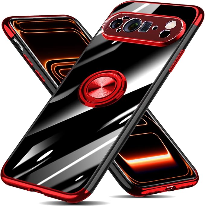 Mnunjiajia 対応 Google Pixel 10 Pro XL 用 ケース リング クリア 透明 TPU メッキ 加工 耐衝撃 車載ホルダー対応 スタンド機能 防塵 薄型 軽量 落下防止 一体型 変形防止 全面保護カバー ピクセル 10 プロ XL カバー 赤 MJJ-1052-13-02