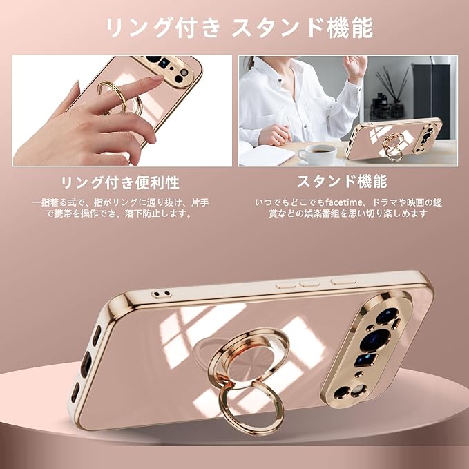LuFiYa Google Pixel 10 Pro XL 5G 用 ケース リング付き カバー TPU素材 スタンド機 軽量 耐衝撃 薄い 擦り傷防止 落下防止 車載ホルダー 360 回転 スマホケース Google Pixel 10 Pro XL 5G 対応 (ピンク)
