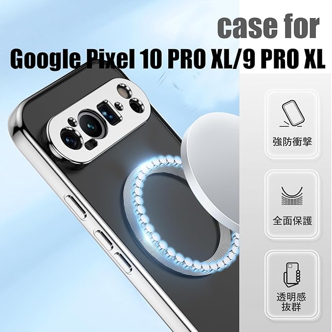 GYOKUYU [透明ケース]for Google Pixel 10 pro XL/Google Pixel 9 ProXL ワイアレス充電対応 携帯ケース MagSafe対応 グーグル ピクセル10 プロXL スマホカバー 黄変防止 操作便利 超薄型 カバー(ブラック)