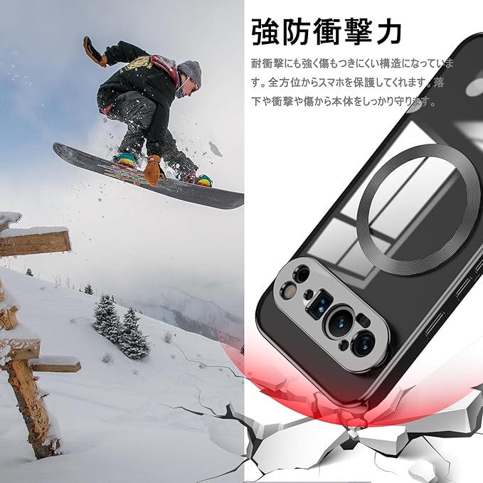 【強防衝撃力・全面保護】耐衝撃にも強く傷もつきにくい構造になっています。全方位からGoogle Pixel 10 Pro XLを保護してくれます。落下や衝撃や傷から本体をしっかり守ります。それに、背面の縁を高く設計し、Google Pixel 9 Pro XLの液晶画面をキズから保護します。落下、衝撃、擦れ傷など一切心配ありません。様々な場所で携帯を快適に活用できます。