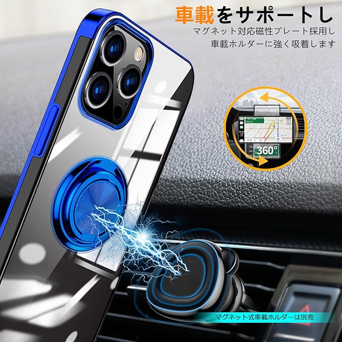 Mnunjiajia 対応 Google Pixel 10 Pro用 ケース Google Pixel 10 用 ケース リング クリア 透明 TPU メッキ 加工 耐衝撃 車載ホルダー対応 スタンド機能 防塵 薄型 軽量 落下防止 一体型 変形防止 全面保護カバー ピクセル 10/10 プロ カバー 青 MJJ-1052-12-03